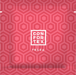 The unit package of CONFORTEX STRAWBERRY condoms, includes the instructions and indications for use and preservation, as well as all information necessary for a safely use.