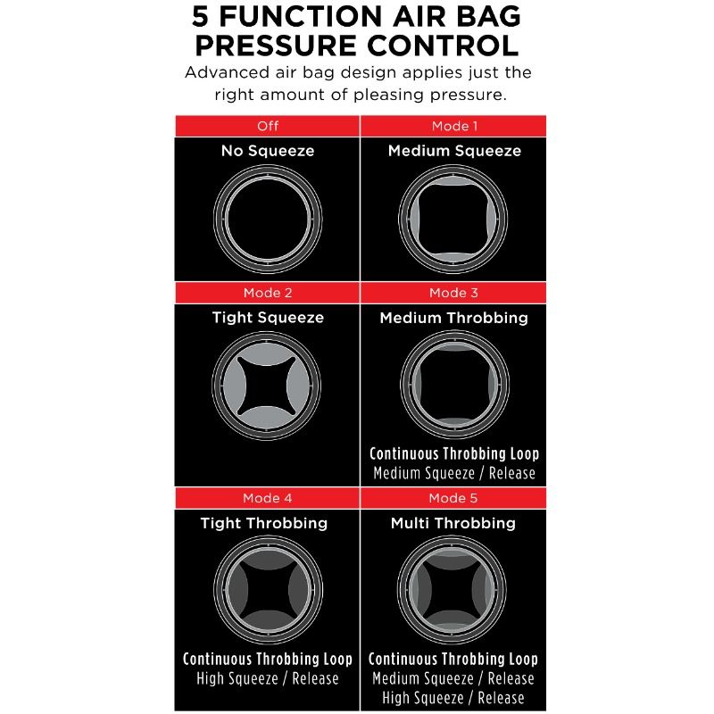 - 5 Function Air Bag Pressure Control - Advanced air bag design applies just the right amount of pleasing pressure. Press to activate and hold for 3 seconds to release.