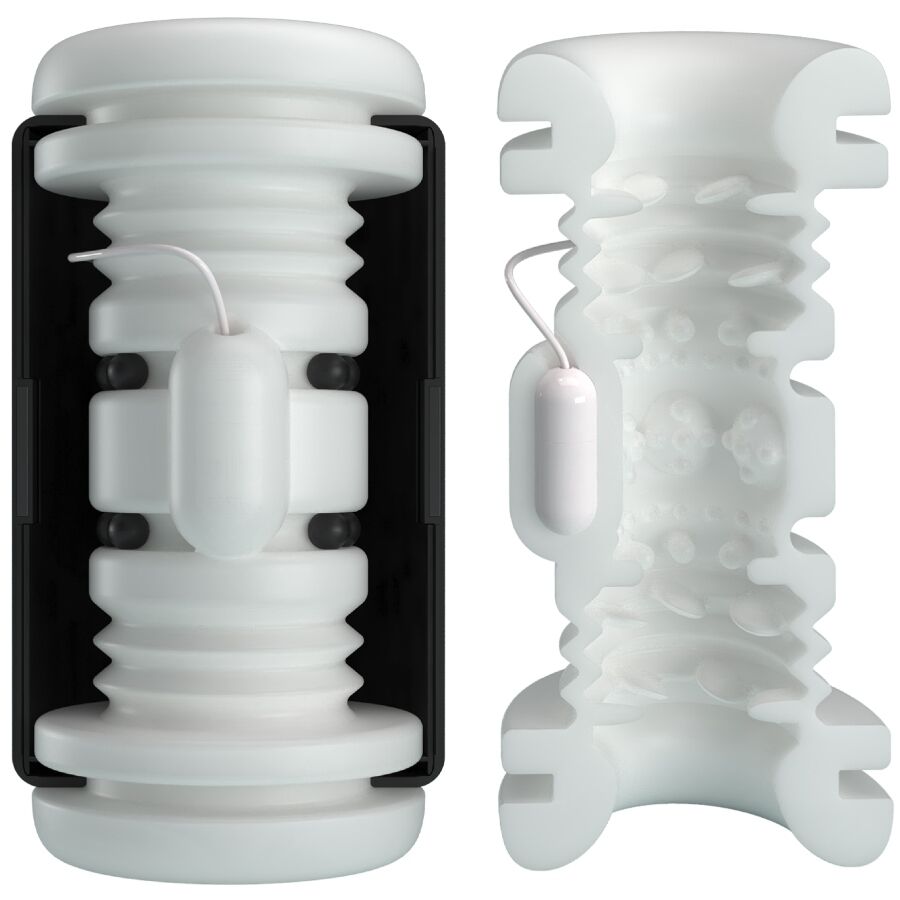 Enjoy deep and satisfying pleasure with this multi-speed vibration masturbator cup. This fantastic male toy will give you an experience much more than usual, because of its unique clamping design, the cups on both sides can be squeezed manually for greater pleasure. And ultra-realistic entry points plus ribbed and ridged internal sleeves make for the perfect penetration experience while the multi-speed vibration design gives you maximum sensations. Enjoy the textured inner canal until you reach an intense orgasmic release.